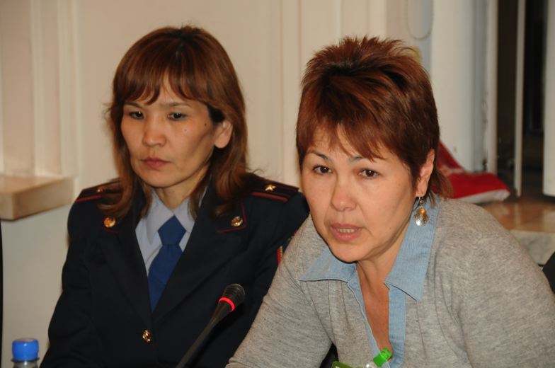 Kazakhstani police women join government officials and civil society representatives to discuss co-operation on promoting and monitoring women's rights, Almaty, 11 December 2008.