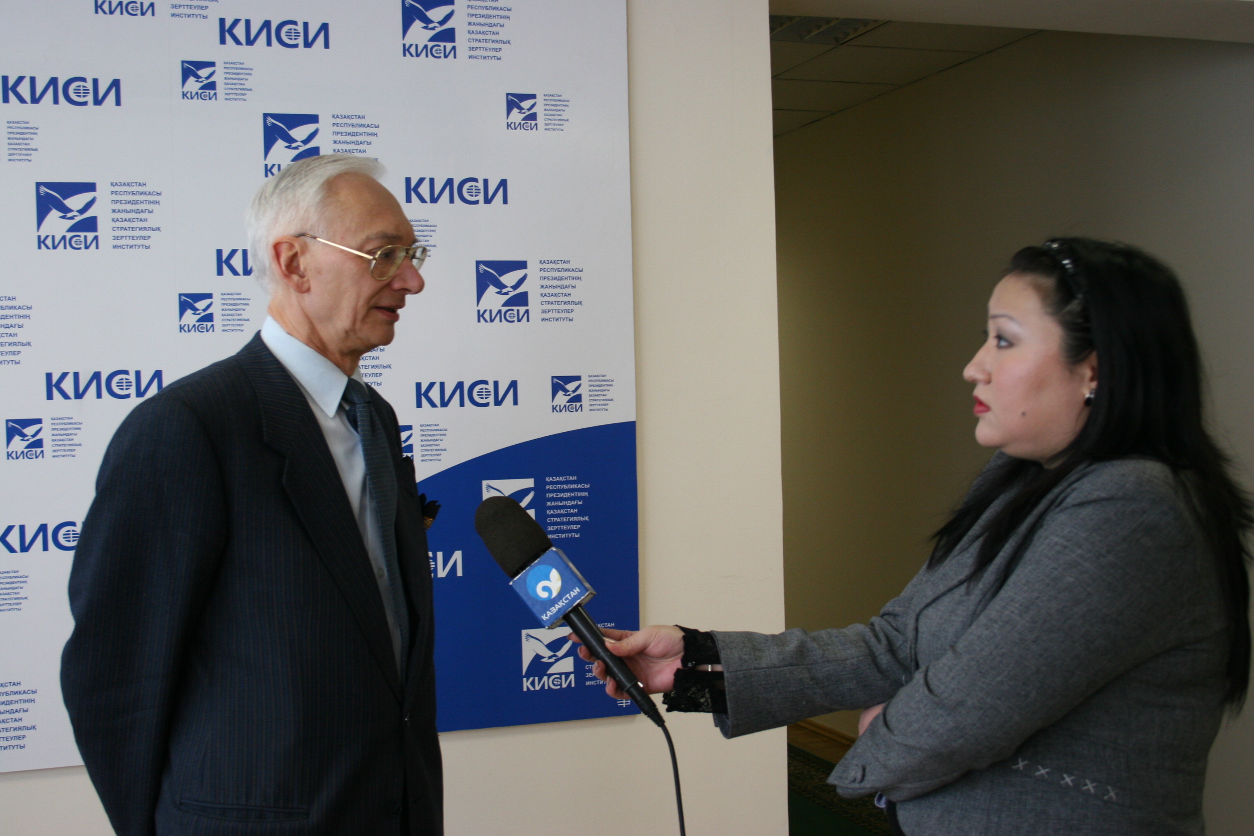 Head of the OSCE Centre in Astana, Ambassador Alexandre Keltchewsky, talks to a journalist at a conference on Kazakhstan's experience in inter-ethnic and inter-religious understanding, tolerance and non-discrimination, 25 February 2009.