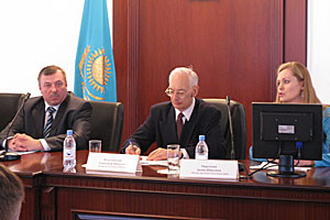 L-r: Alexander Savankov, Kazakh Vice-Minister of Interior; Amb. Alexandre Keltchewsky, Head of the OSCE Centre in Astana; and Diana Okremova, Head of the North Kazakhstan Legal Media Centre, opening a course on police-media communication, 27 Feb 2009.