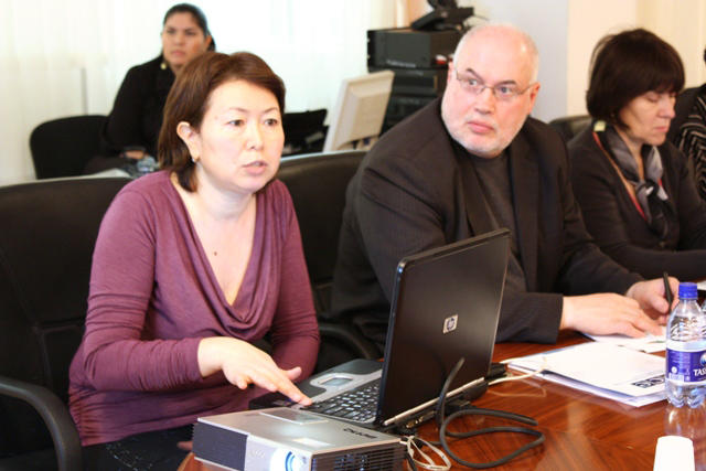 A representative of the Kazakh Ministry of Environmental Protection gives a presentation on the Ministry's activities regarding the Aarhus Convention at a workshop supported by the OSCE Centre in Astana, 25 November 2009.