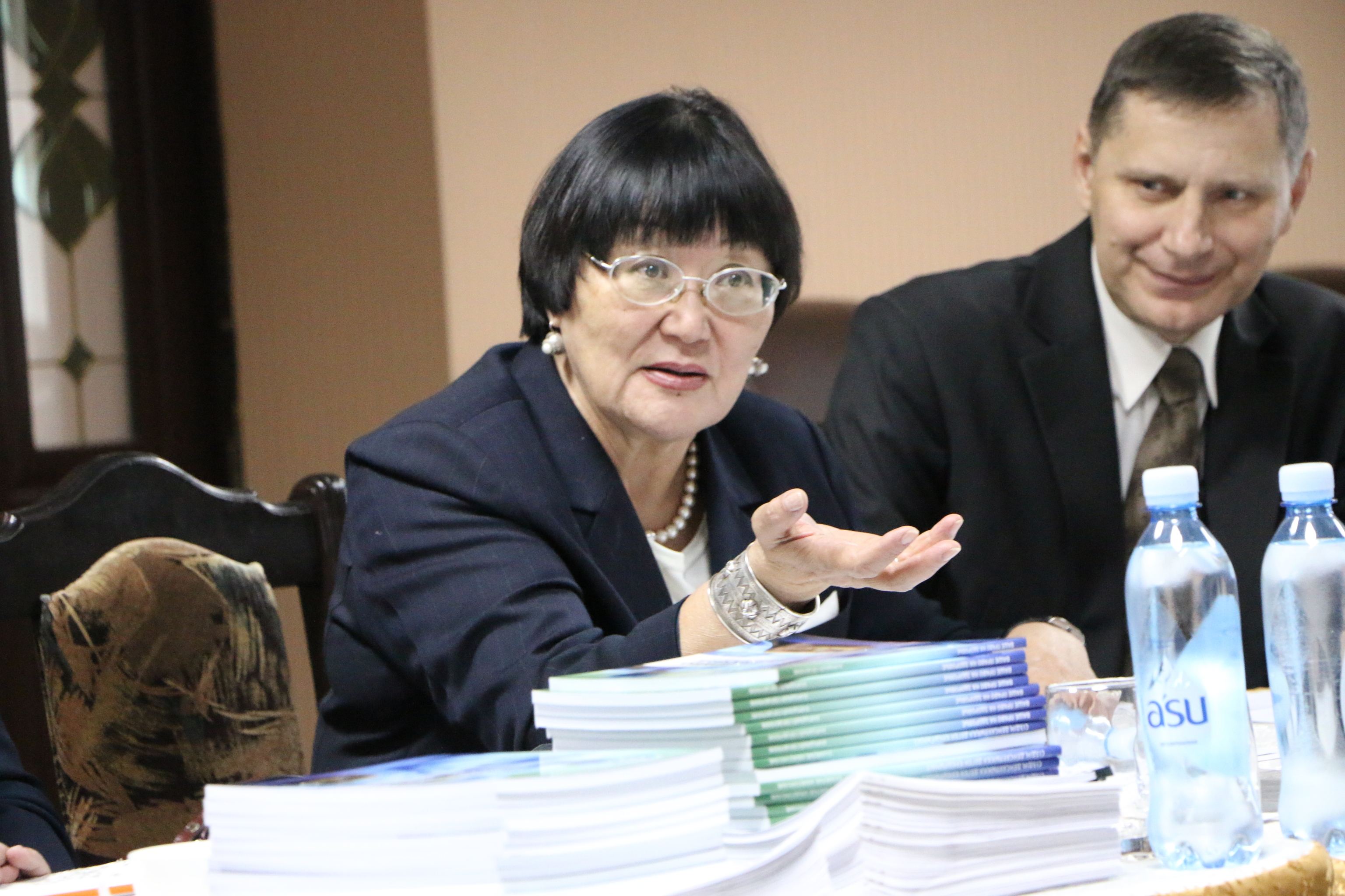Bakhyt Tumenova, National expert on health protection rights, delivers a presentation at a workshop on economic, social and cultural rights, Kokshetau, 16 November 2015.