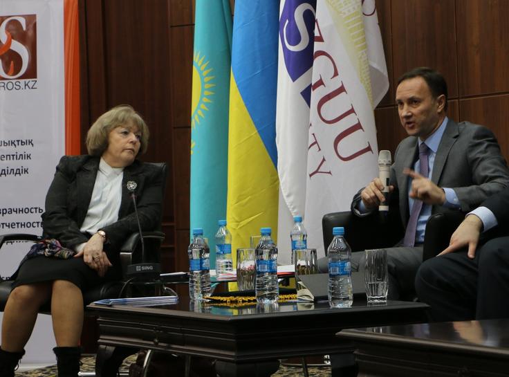 Deputy Prosecutor General Andrey Kravchenko speaking about the counter-terrorism policies in Kazakhstan at an expert panel discussion of the Youth Legal Forum dedicated to Human Rights Day, Astana, 10 December 2015.