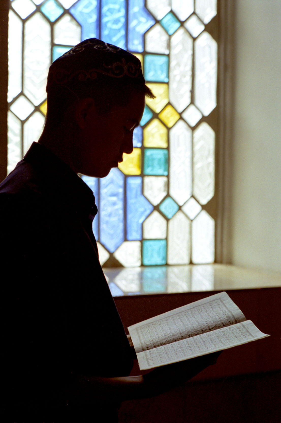A boy reads the Koran in Astana's mosque, Kazakhstan.