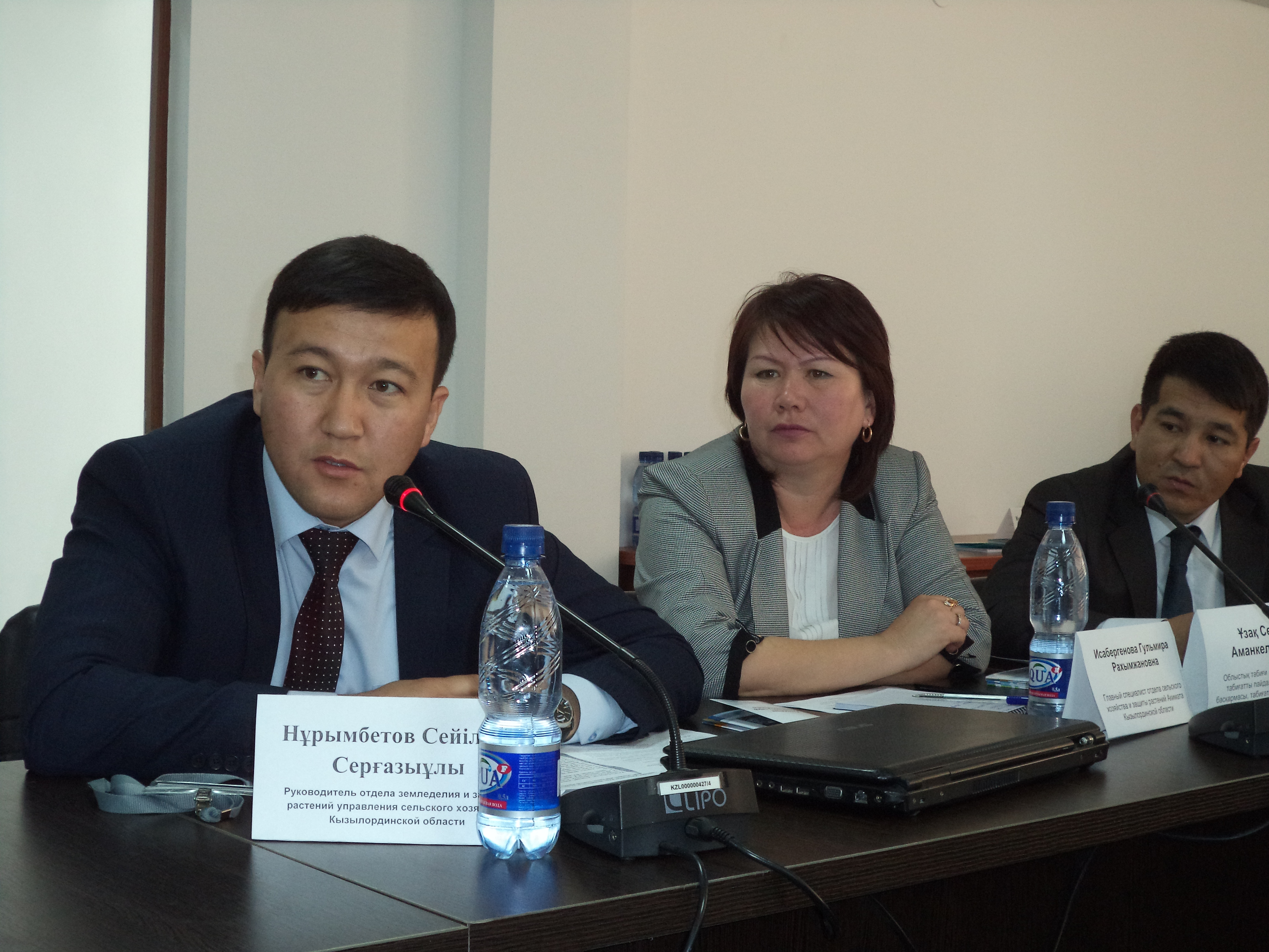 Participants discussing various measures for the safe management and disposal of harmful chemicals during the OSCE-supported seminar, Kyzylorda, 27 April 2016.