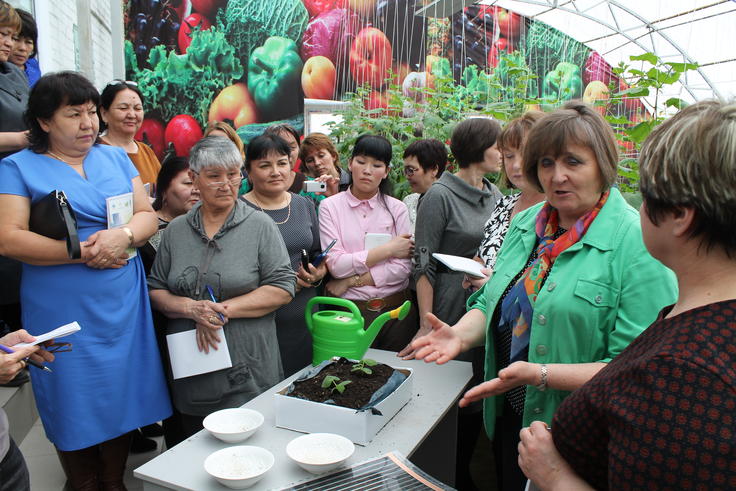 Training seminar participants studying the basics of “green” technologies in practice during the event, Arnasai, 4 May 2016.