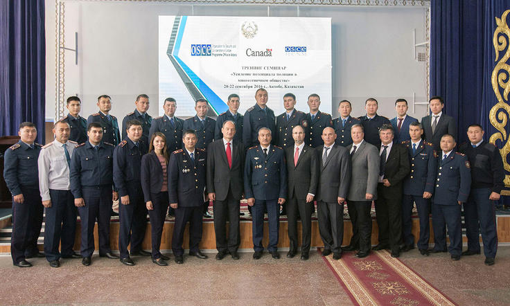 Participants at an OSCE-supported second annual training seminar on multi-ethnic policing in Kazakhstan, Aktobe, 20 September 2016.
