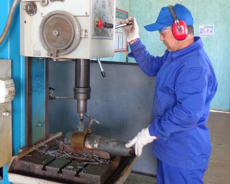 A KAZTEC specialist at Aris Explosive Ordnance Demilitarization Facility engages in the dismantling of an artillery shell during a practical demonstration in August 2015. Participants for this year's event will again visit the Aris facility for part the practical section of the course. Aris/Shymkent, Kazakhstan, 28 August 2015
