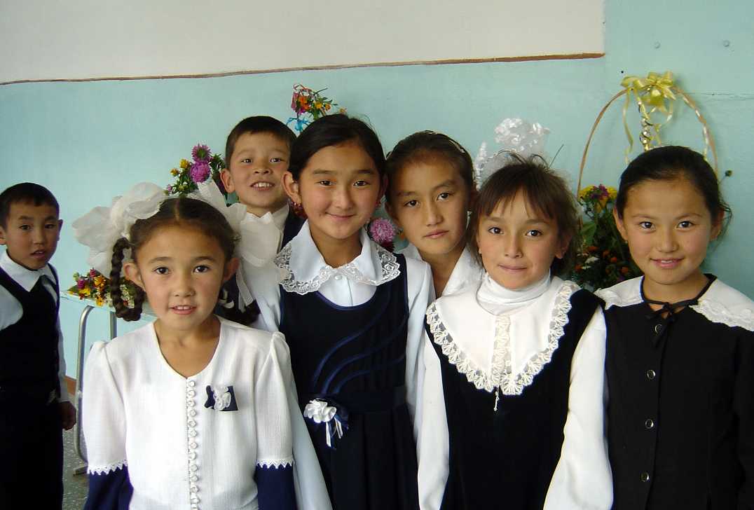 Schoolchildren in the village of Sarzhal, in Kazakhstan. Picture taken in 2004.