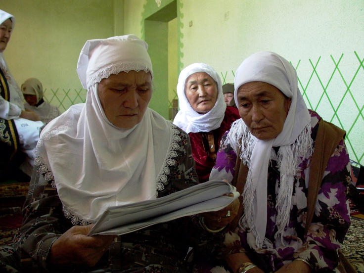 Kazakh women reading. Photo taken 2004.