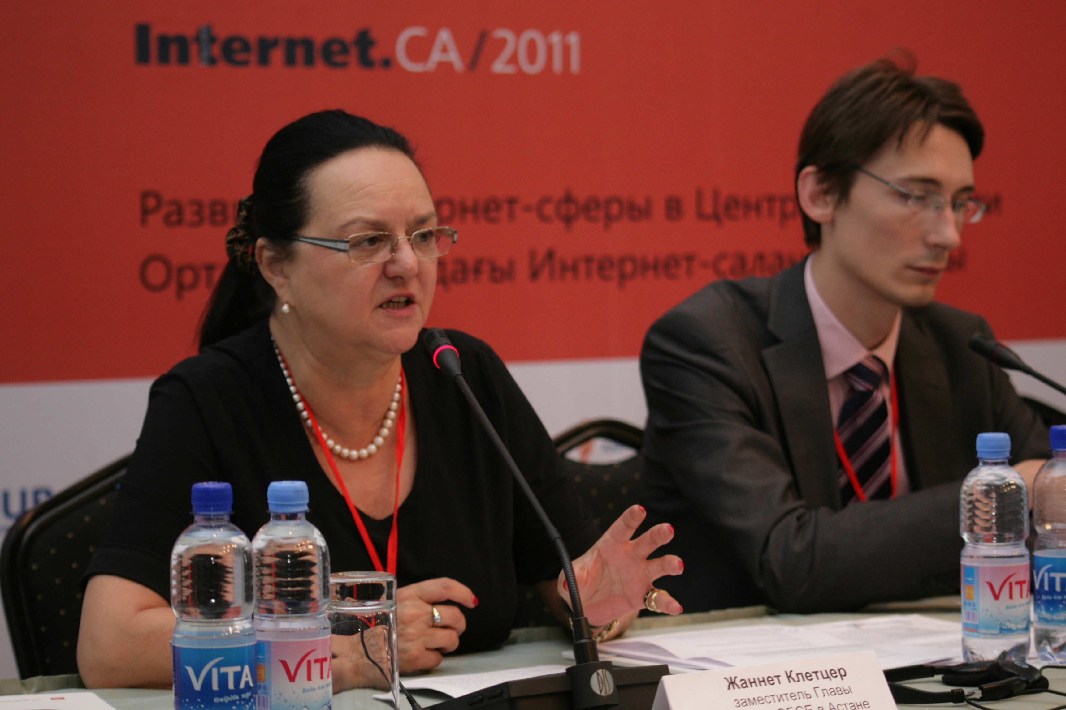 Jeannette Kloetzer, Deputy Head of the OSCE Centre in Astana, addresses a regional forum on Internet development in Central Asia, Almaty, 23 June 2011.