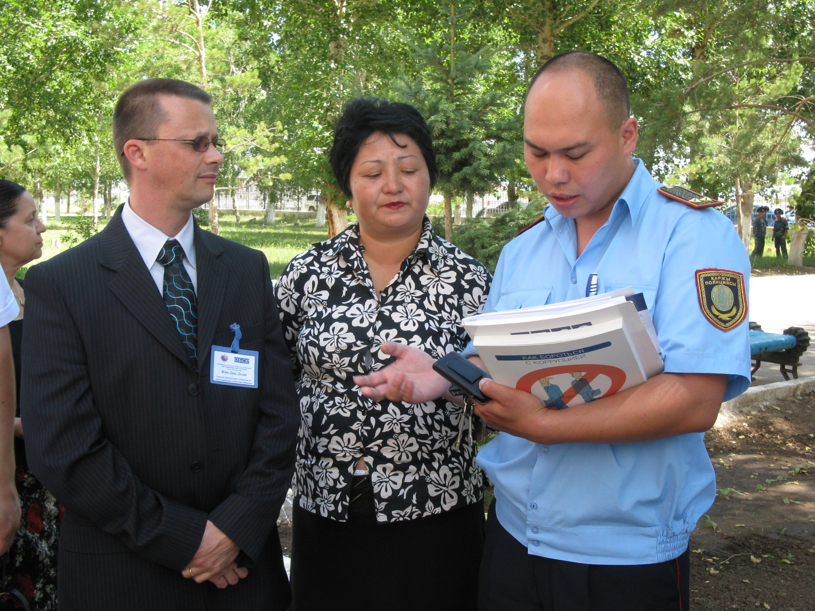 Kazakh and French representatives from financial police agencies discuss the outcome of an OSCE-organized workshop on how to combat corruption, Astana, 27 June 2008.
