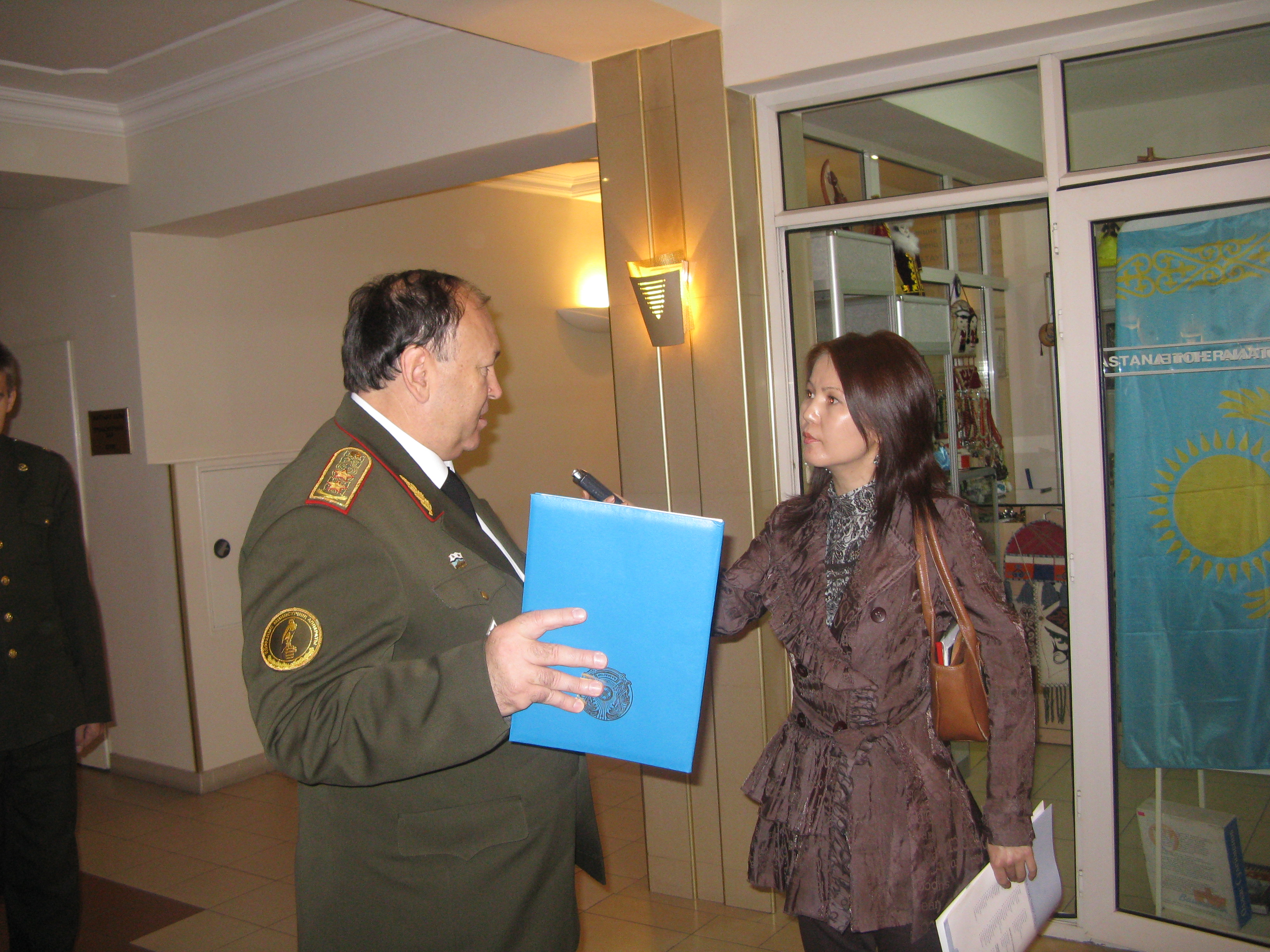 Kazakh Deputy Defense Minister Bulat Sembinov gives an interview at a seminar on implementation of OSCE Code of Conduct on Politico-Military Aspects of Security in Central Asia, 22 September 2008.