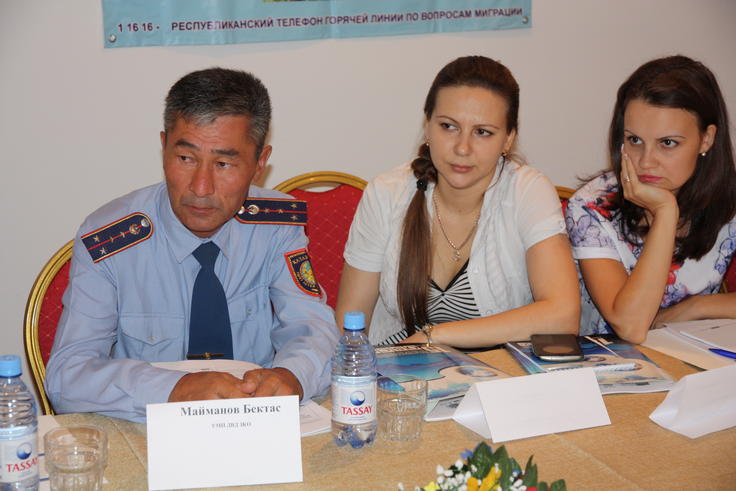 Көші-қон органдары мен үкіметтік емес сектордың өкілдері еңбек көші-қоны саласындағы ЕҚЫҰ-ның стандарттарын талқылап жатыр, Орал, 27 шілде 2015 ж.