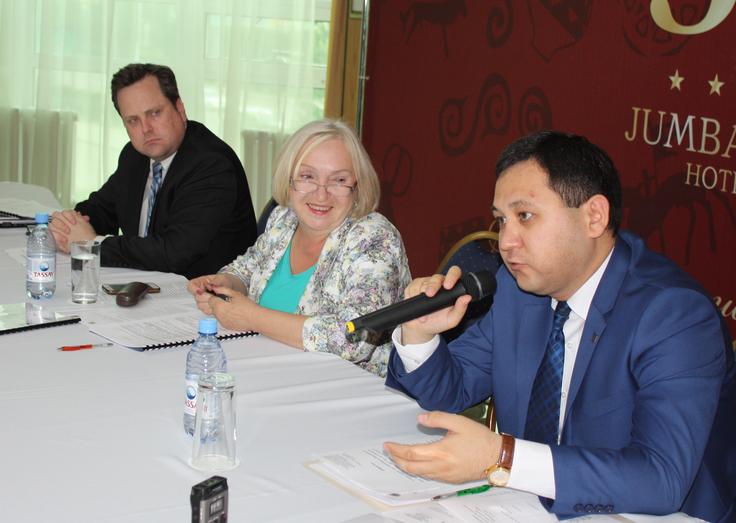 Болат Кальянбеков, ҚР Жоғарғы Соты жанындағы Ақпараттық қамтамасыз ету бөлімінің меңгерушісі, қоғамдық тыңдаулар маңыздылығы жайында аудиторияға баяндауда, Астана, 2016 ж. 21 шілде