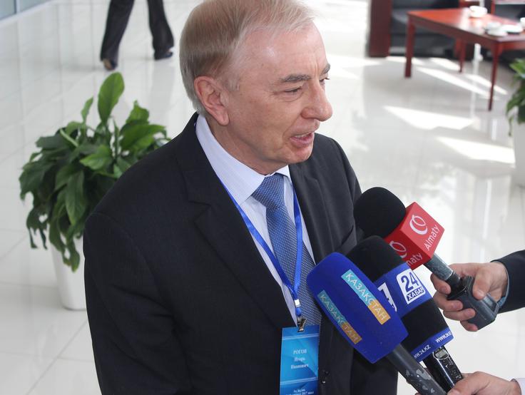 Igor Rogov, Chairperson of the Constitutional Council gives an interview to the local TV channels on development of criminal justice in Kazakhstan, Ak-bulak, 17 March 2017