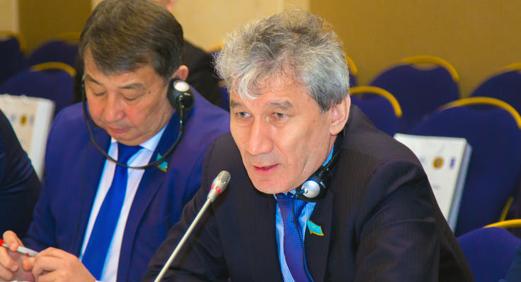 Shavkhat Utemisov, Member of the Committee on Ecology and Environmental management of Mazhilis of the Parliament, enquiring about the good practices in implementing the Strategic Environmental Assessment, Astana, 6 April 2017.