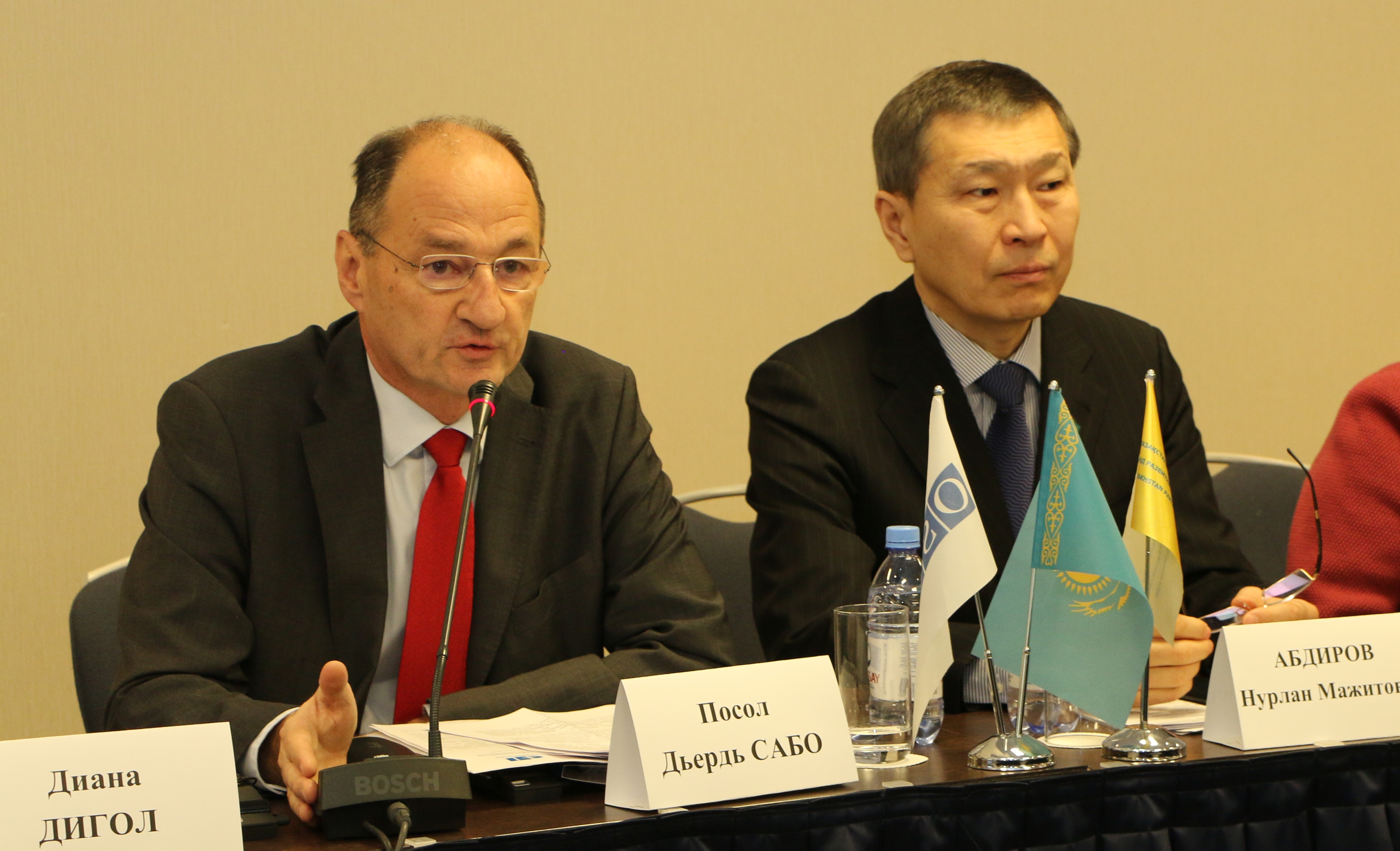 Елші Дьердь Сабо, Астандағы ЕҚЫҰ Бағдарламалар офисінің Басшысы, Қазақстандағы парламентаризмді дамыту бойынша халықаралық конференцияда алғы сөз сөйлеуде, Астана, 14 ақпан 2019 жыл.