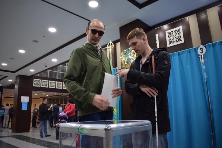 Мүгедектігі бар адам Қазақстандағы президенттік сайлау кезінде дауыс беруде, 9 маусым 2019 ж.