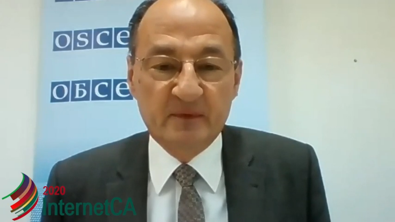 Елші Дьердь Сабо, ЕҚЫҰ-ның Нұр-Сұлтандағы Бағдарламалар офисінің басшысы Орталық Азиядағы Интернетті дамыту жөніндегі 11-ші форумының қатысушыларына сөз сөйлеуде, 11 қараша 2020 жыл.