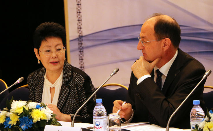 (r-l) Ambassador György Szabó, Head of the OSCE Programme Office in Astana and Zauresh Baimoldina, Deputy Justice Minister at an OSCE-supported conference on rights of individual in Kazakhstan, Astana, 16 March 2017