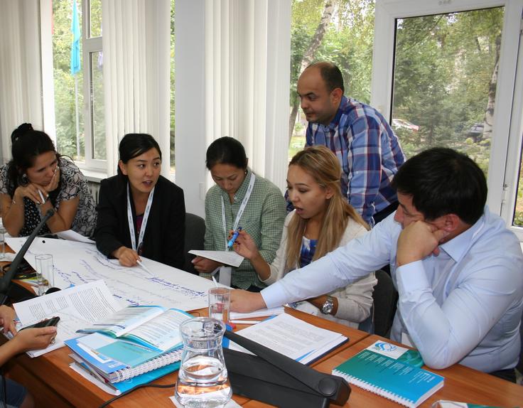 Participants of Central Asian Leadership Programme take part in a group exercise, Almaty, 11 September 2017.