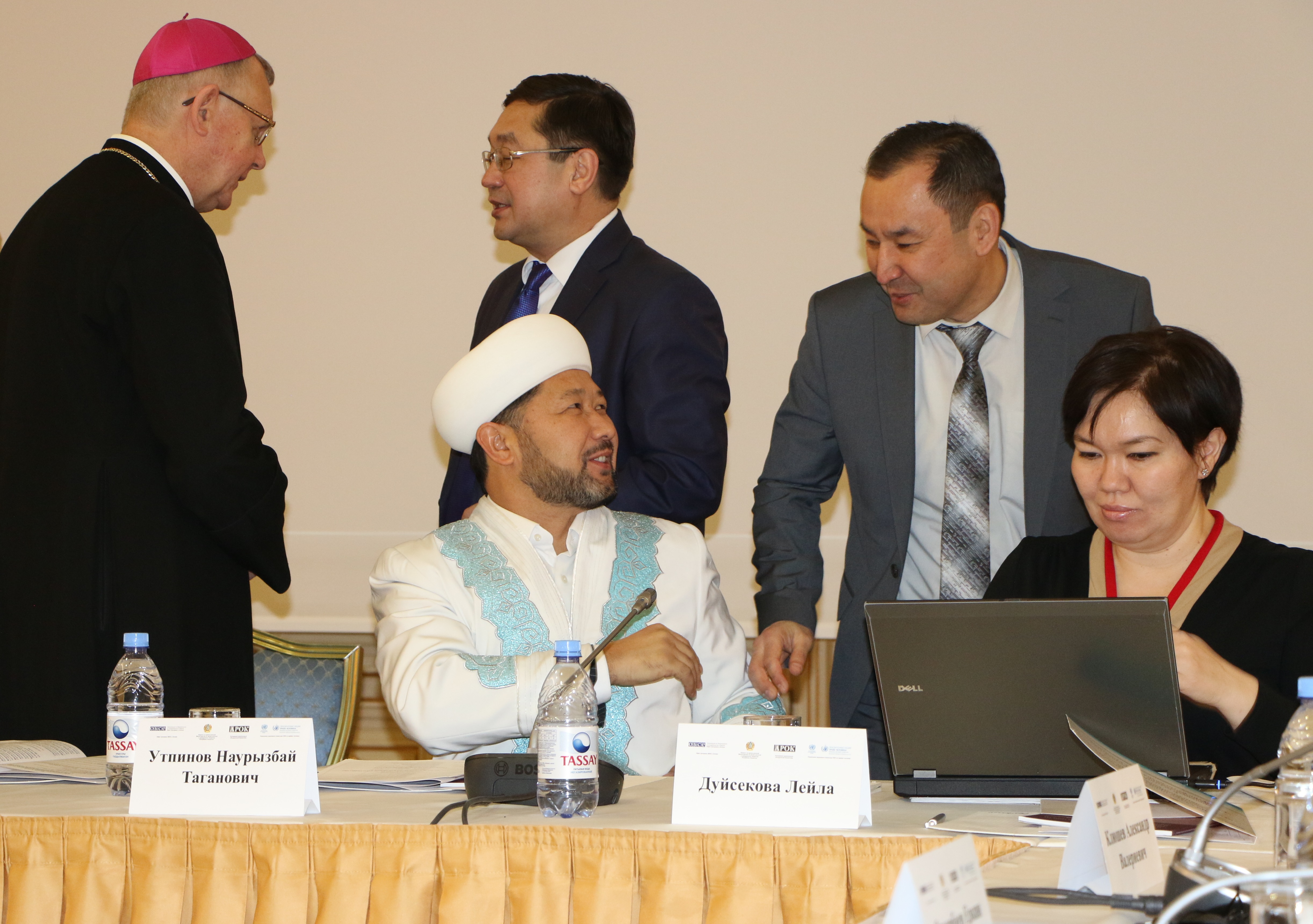 Participants of the roundtable discuss the development of legislation and law-enforcement practices related to religious activities, Astana, 22 November 2017.