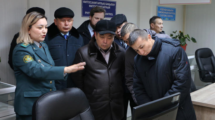 Instructor of the Border Service's Academy informing the participants of the event about the Academy's capabilities to train border control officers, Almaty, 27 February 2018.