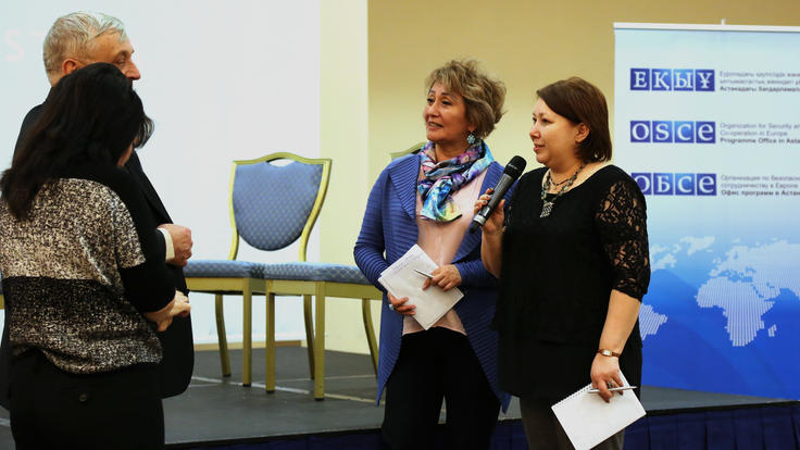 Participants simulate an inspection visit and interview during the training seminar on the National Preventive Mechanism (NPM) for Preventing Torture and Ill-treatment, Astana, 16 March 2018.