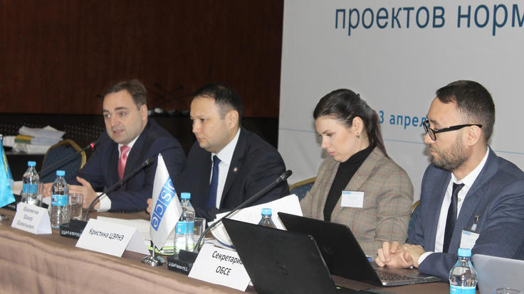 Speakers at the "Anti-corruption proofing of draft legislation" OSCE training, Astana, 11 April 2018.