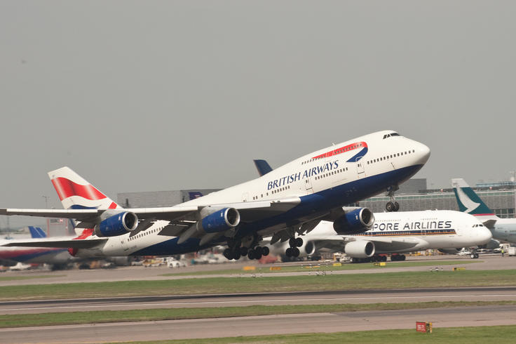 A British Airways Boeing 747-400 takes off from Heathrow Airport in London