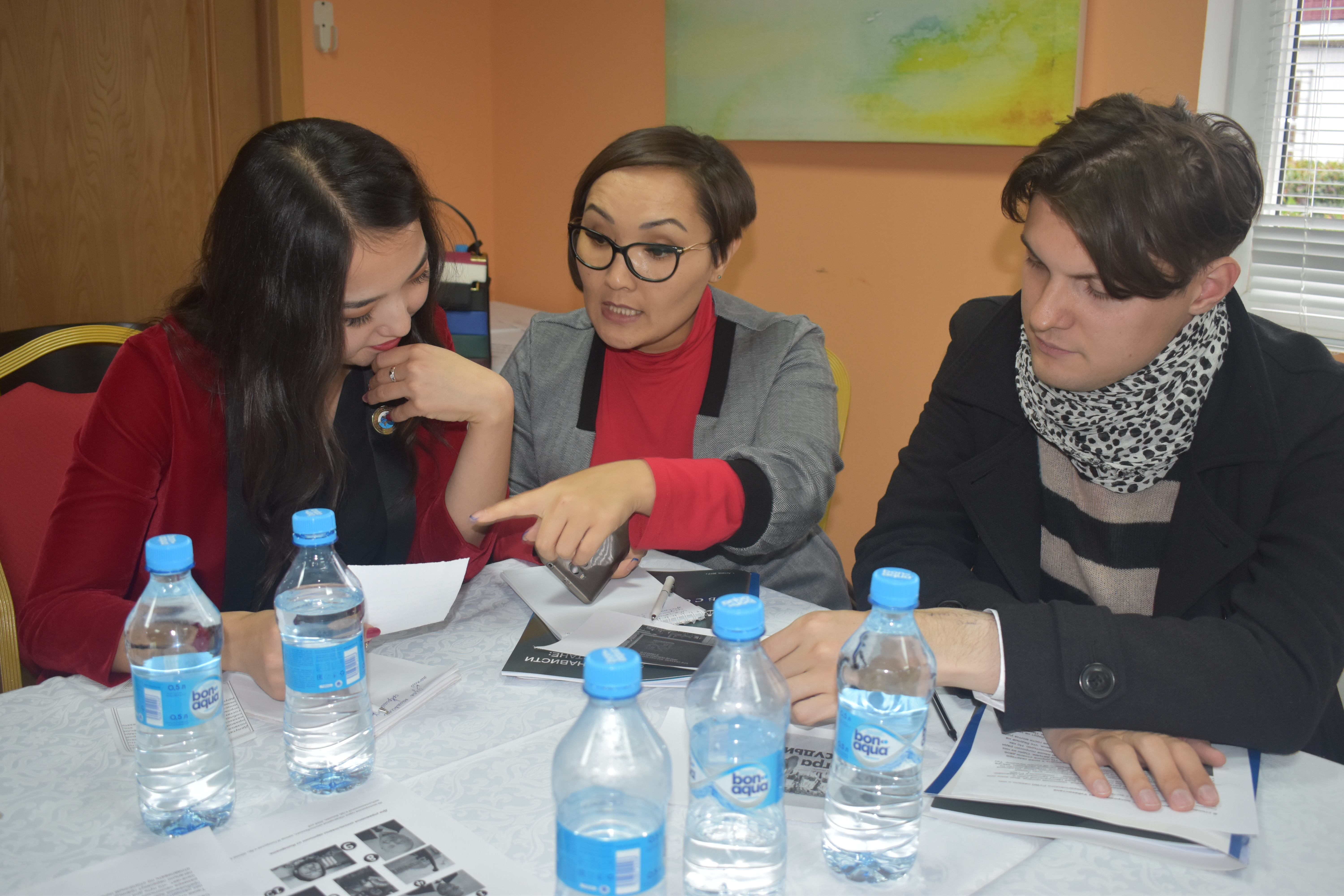 Local journalists, human rights activists and students examine real-life examples of international content that were judged to be hate speech, Uralsk, Kazakhstan, 5 October 2018