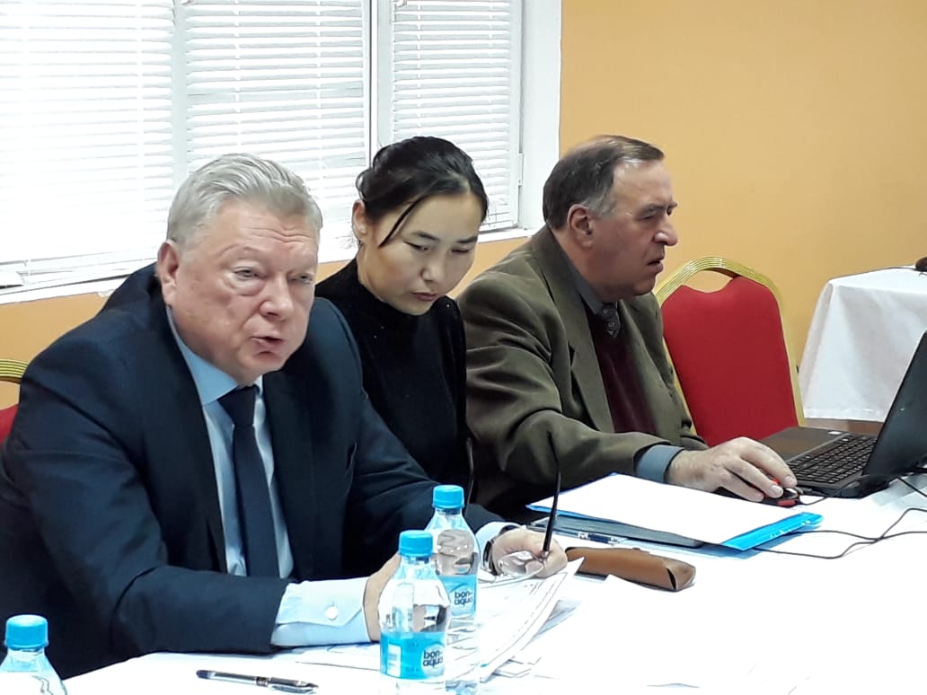 An expert from Russian Federation is presenting his proposal on joint activities between the Russian Federation and Kazakhstan in sustainably managing Zhaiyk (Ural) river’s basin, Oral, 7 November 2019.