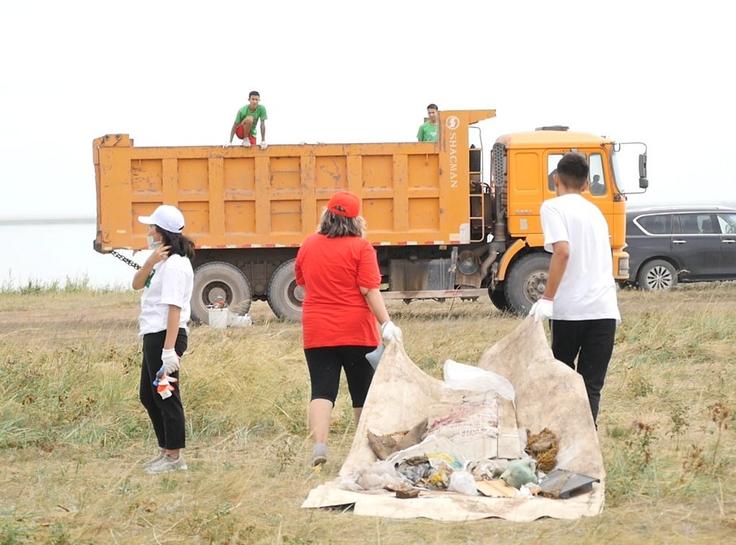 Team of Eco-volunteers cleaning down nature landscape, Saryoba village, Akmola region, 8 August 2020.