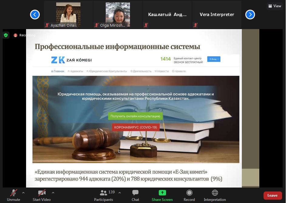 A screenshot of presentation on the impact of digital technologies on the legal profession in Kazakhstan made by Yerzhan Siyubayev, Lawyer of Nur-Sultan Bar Association.