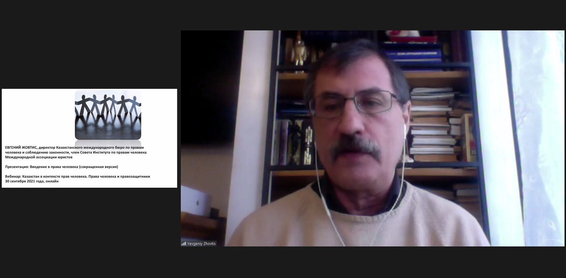 National expert Yevgeniy Zhovtis delivers the presentation to the participants of the webinar, 30 September 2021.