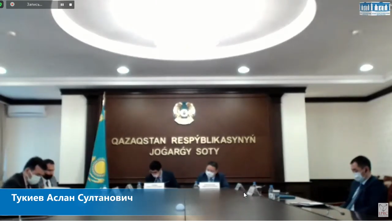 Aslan Tukiyev, Judge of the Judicial Chamber for Criminal Cases of the Supreme Court of the Republic of Kazakhstan, delivers a presentation on the topic “Overview of measures taken by the judicial system to ensure the quality of access to justice during the Covid period in Kazakhstan”, 8 October 2021.