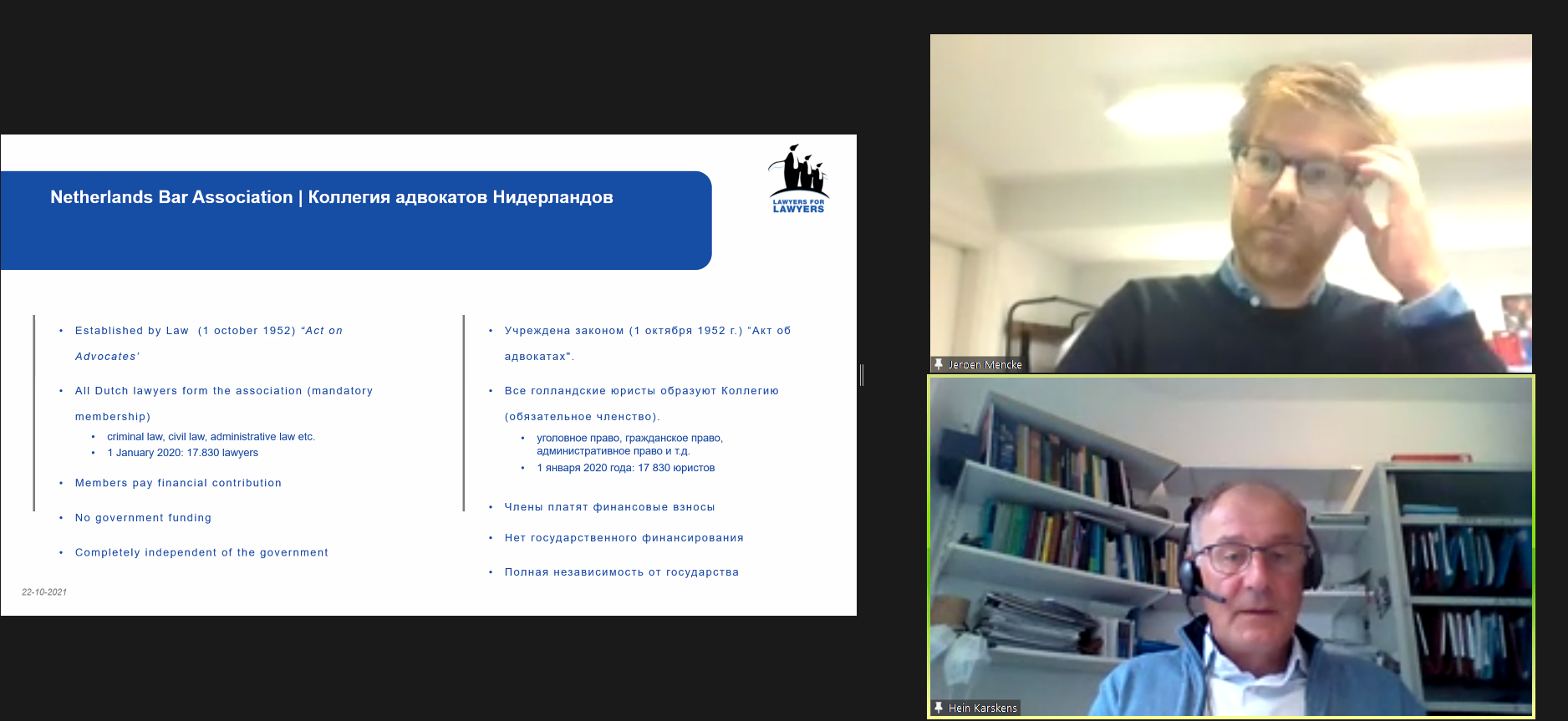 International experts, Jeroen Mencke and Hein Karskens, deliver presentation on “Disciplinary law, quality review and independence of the Disciplinary Board”, 22 October 2021.