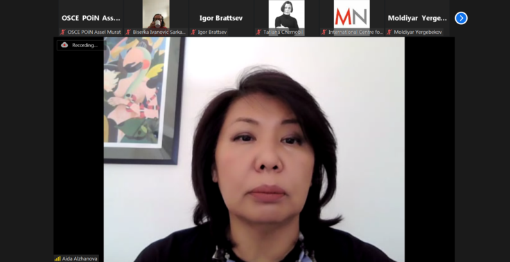 Aida Alzhanova, Expert on strategic and organizational development, gender equality and SDGs expert presenting on State policy on gender equality in Kazakhstan, 2 December 2021.