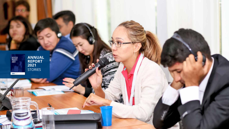 Saule Agatayeva addresses the eighth session of the Central Asian Leadership Programme, Almaty, 13 September 2017.