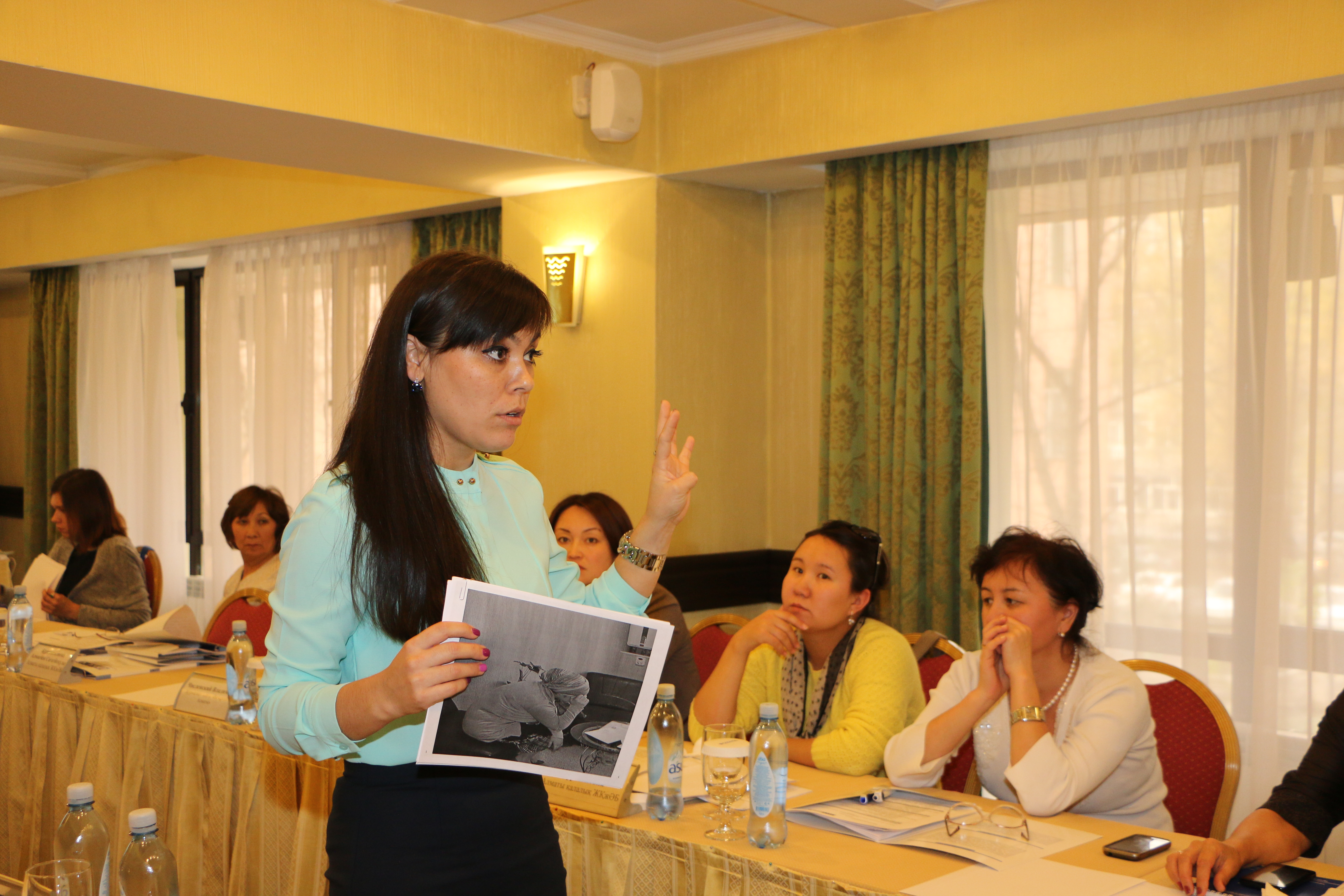Shakhnoza Khassanova, Deputy Director of the Sana Szym NGO addressing seminar participants, Astana, 27 November 2015.
