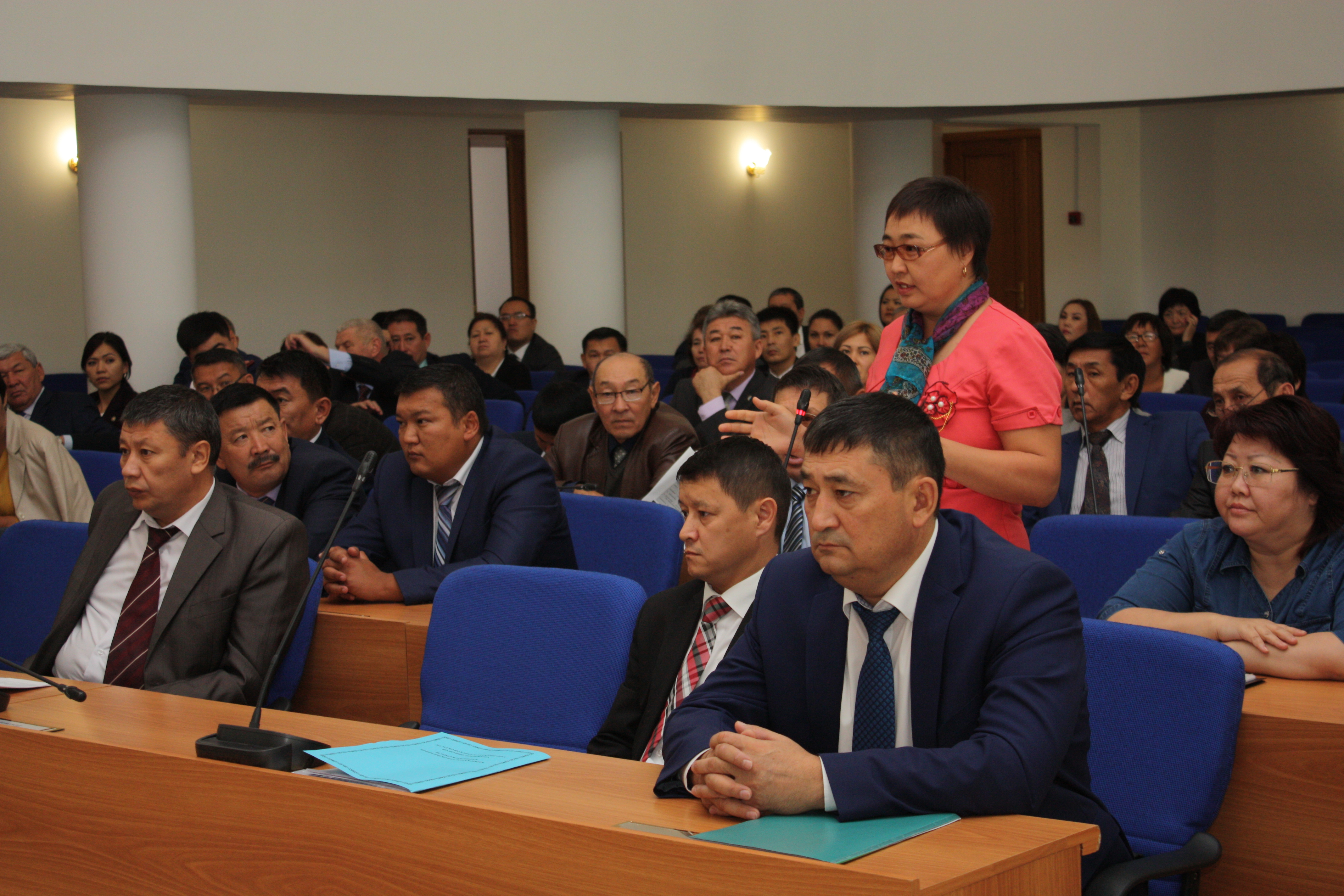 Akims (mayors) of small cities and rural districts of the Aktobe, Atyrau, Mangistau and West Kazakhstan Regions discussing local self-governance implementation, Uralsk, 5 October 2016.