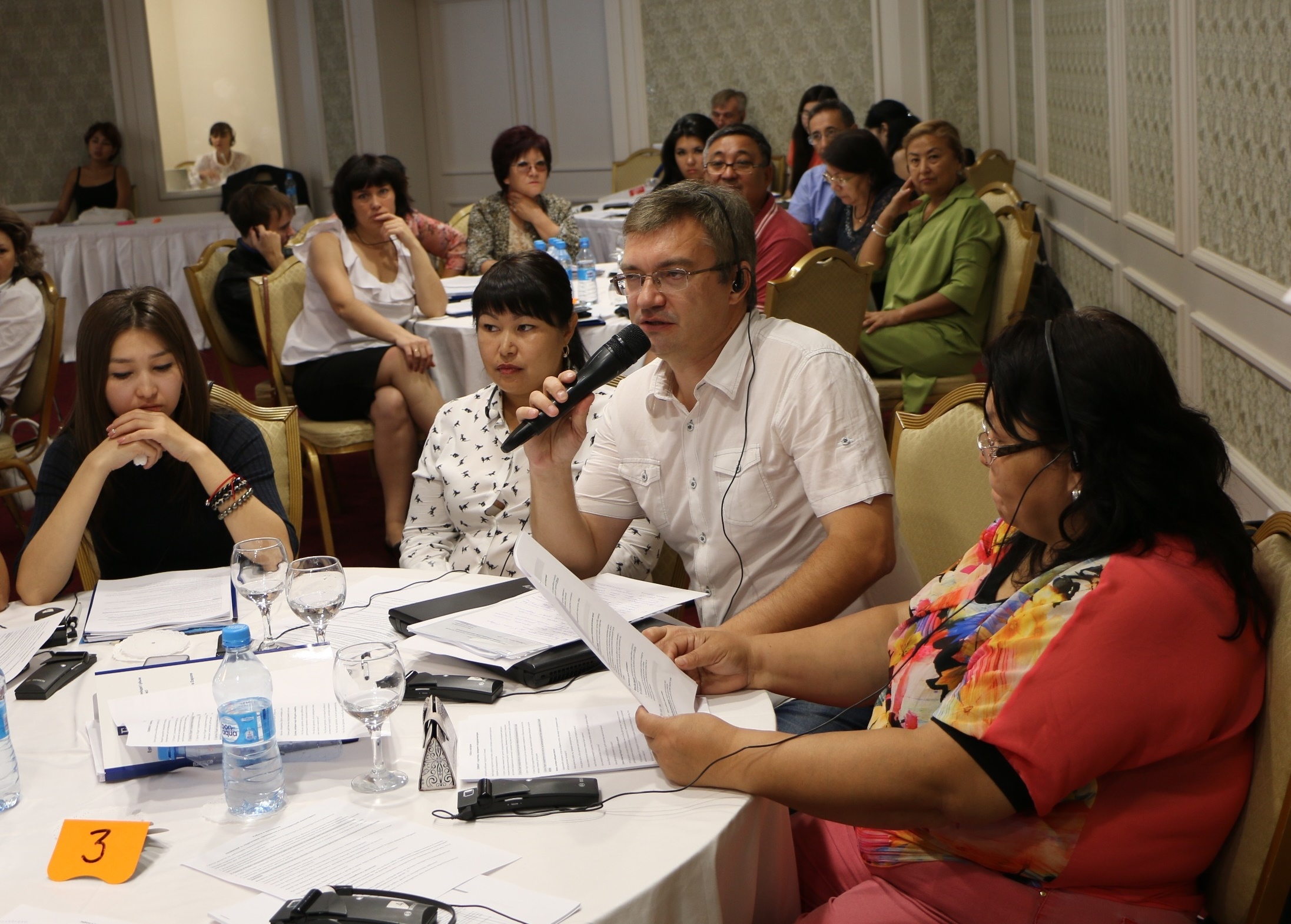 Участник НПМ Сергей Молчанов презентует выводы группы по результатам практического упражнения, Астана, 25 августа 2017 г.