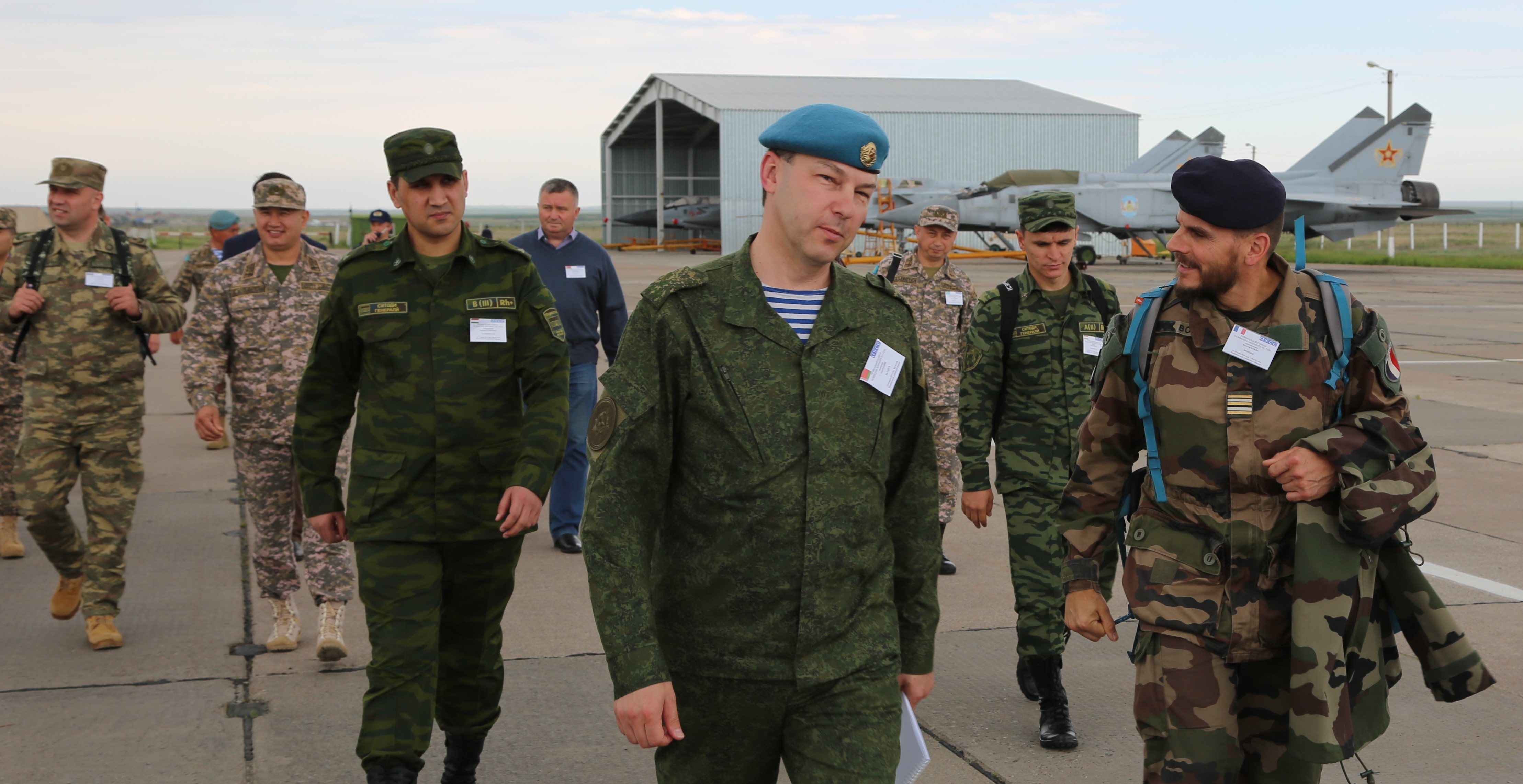Делегация военнослужащих проводит симуляционную инспекцию в 610-ой авиабазе близ Караганды, 14 июня 2019 г.