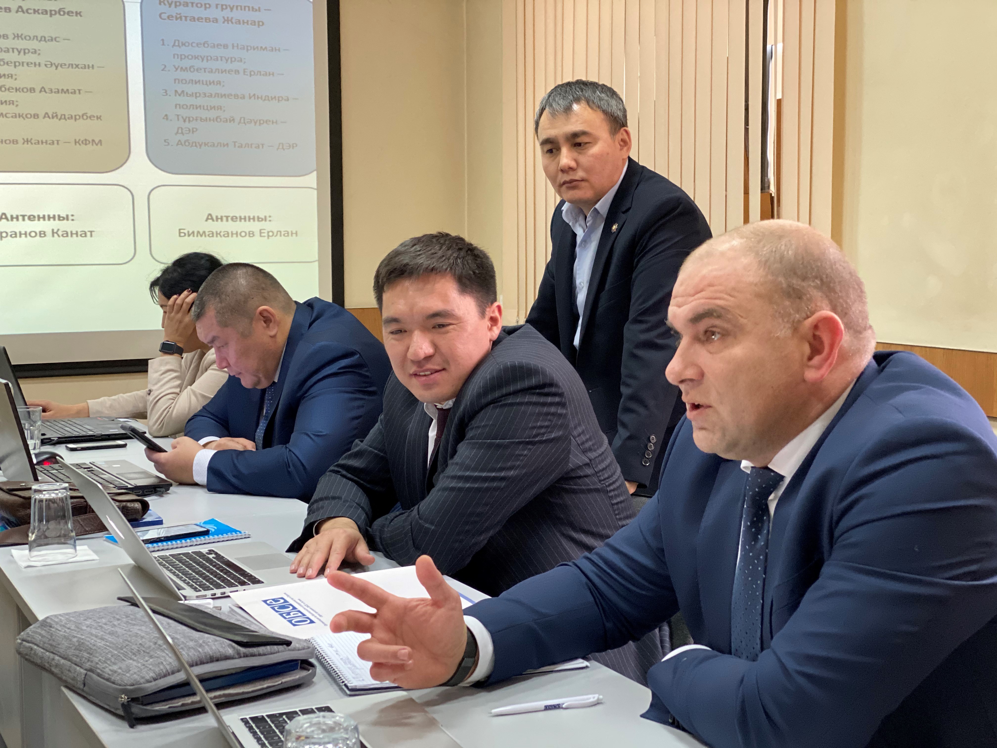 Международный эксперт из Беларуси консультирует учебный командный центр, как лучше координировать деятельность группы участников, Алматы, 10 декабря 2019 года.