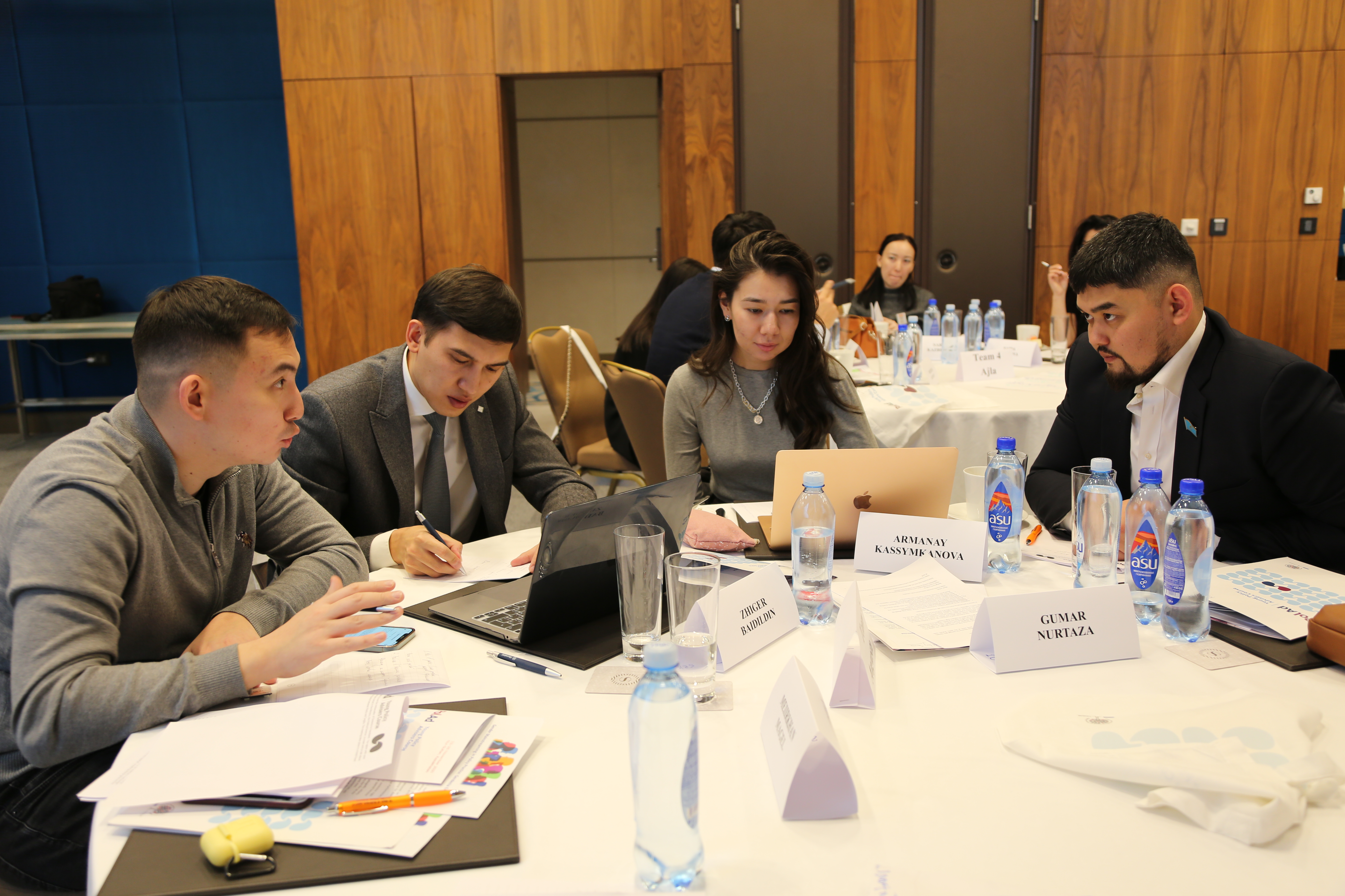 Участники курса обсуждают групповое упражнение, г.Нур-Султан, 24 ноября 2021 г.
