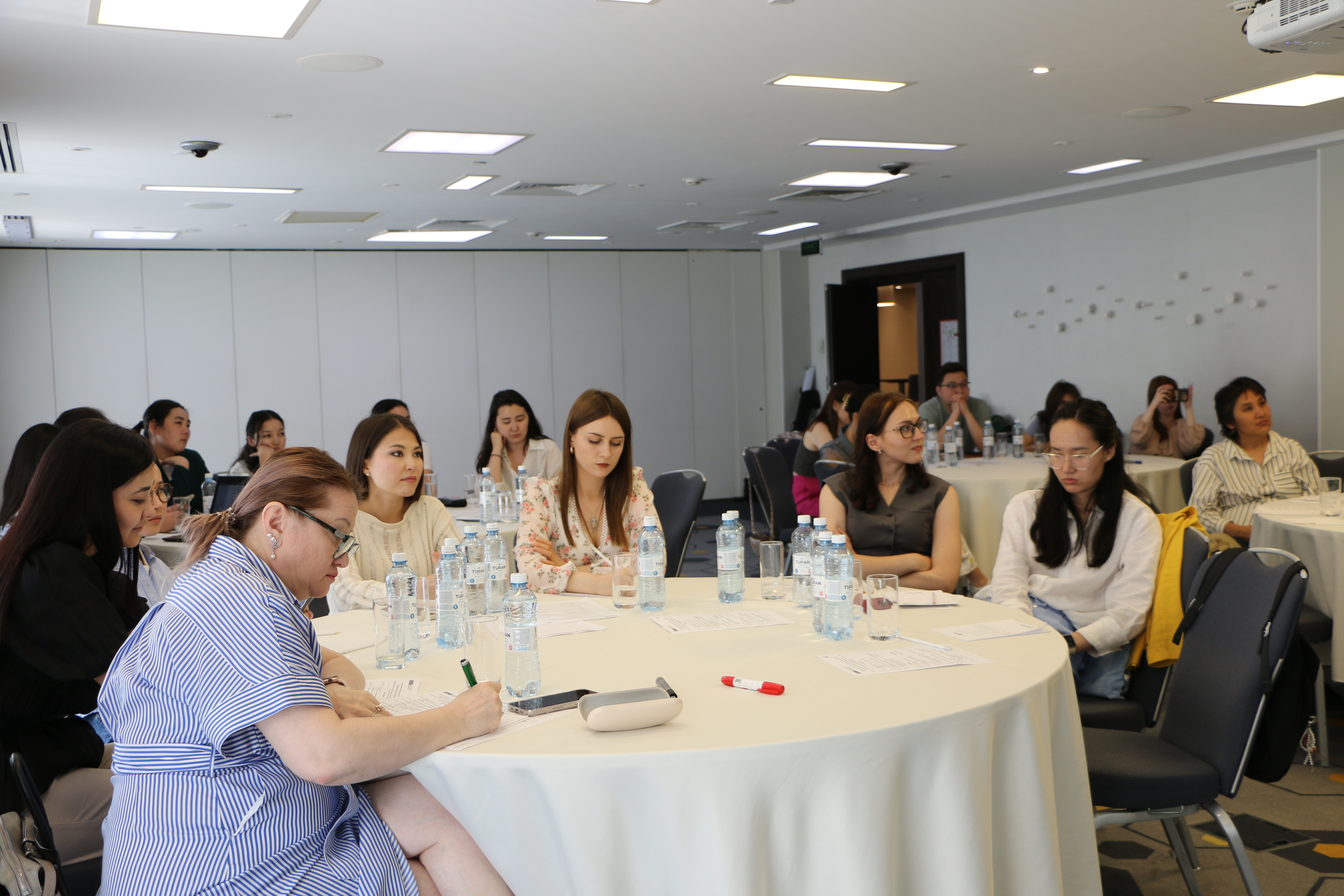 Участники изучают теоретические концепции под руководством эксперта на правовом тренинге для журналистов в Астане 16–17 июня 2025 года.